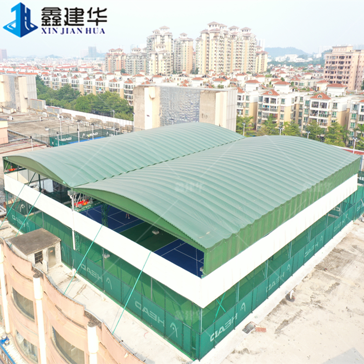 番禺楼顶网球场电动雨棚 羽毛球篮球场伸缩防雨蓬