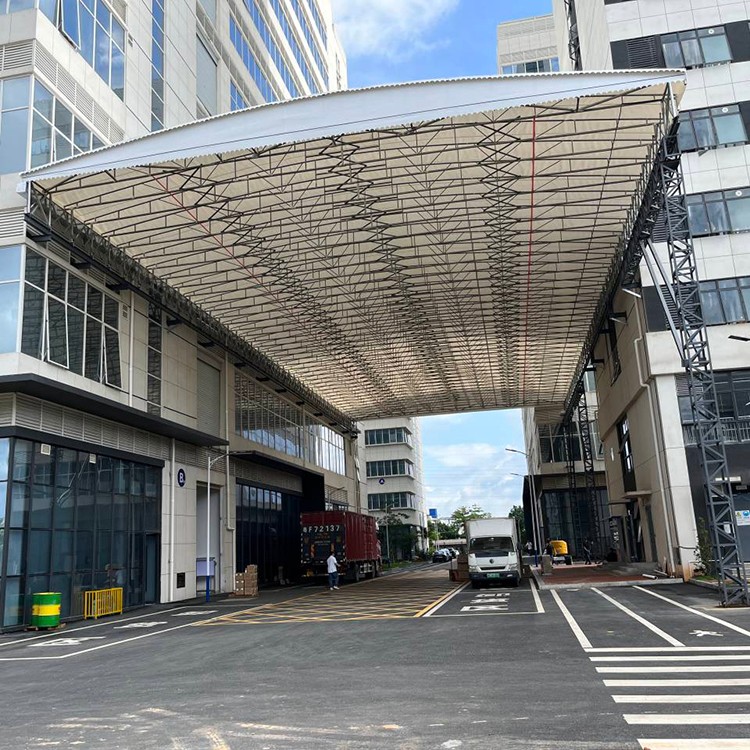 广州钢结构活动推拉雨篷 厂房过道悬空电动遮阳遮雨蓬