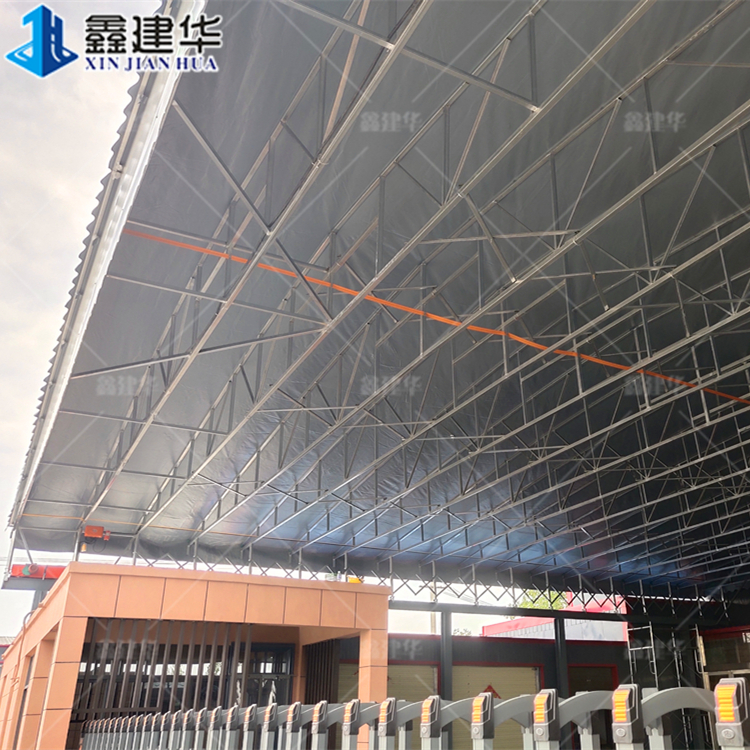 新乡厂房悬空智能收缩电动雨棚 移动式推拉帐篷上门安装测量