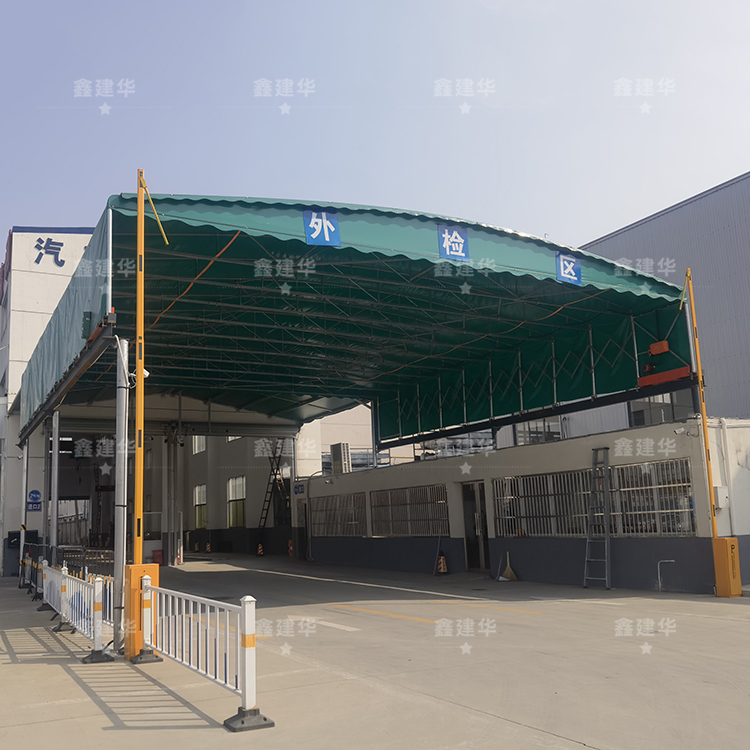 常熟双边钢立柱电动推拉雨篷 检验区加工定制智能收缩雨棚