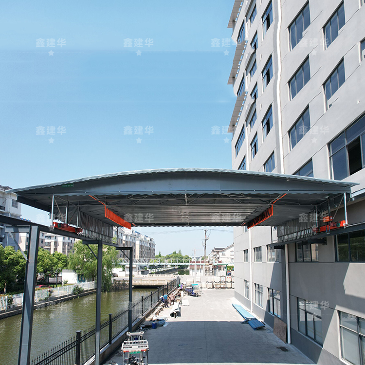 厂房过道大型悬空钢结构电动伸缩雨棚